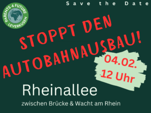 Die feierliche Eröffnung der A1 Autobahnbrücke nehmen wir zum Anlass für einen Sonntagsausflug. Wir unterstützen Parents For Future Leverkusen und Begrüßen ganz herzlich Bundesverkehrsminister Wissing, … 04.02.24 – Kundgebung Rheinallee Leverkusen – Autobahnausbau Stoppen – für eine Mobilitätswende, die Menschen in den Mittelpunkt stellt weiterlesen