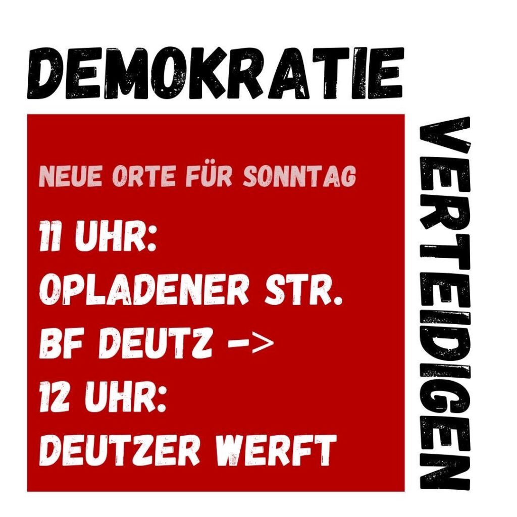 Wir treffen uns am Deutzer Bahnhof und ziehen zusammen für unsere Demokratie zur Deuter Werft