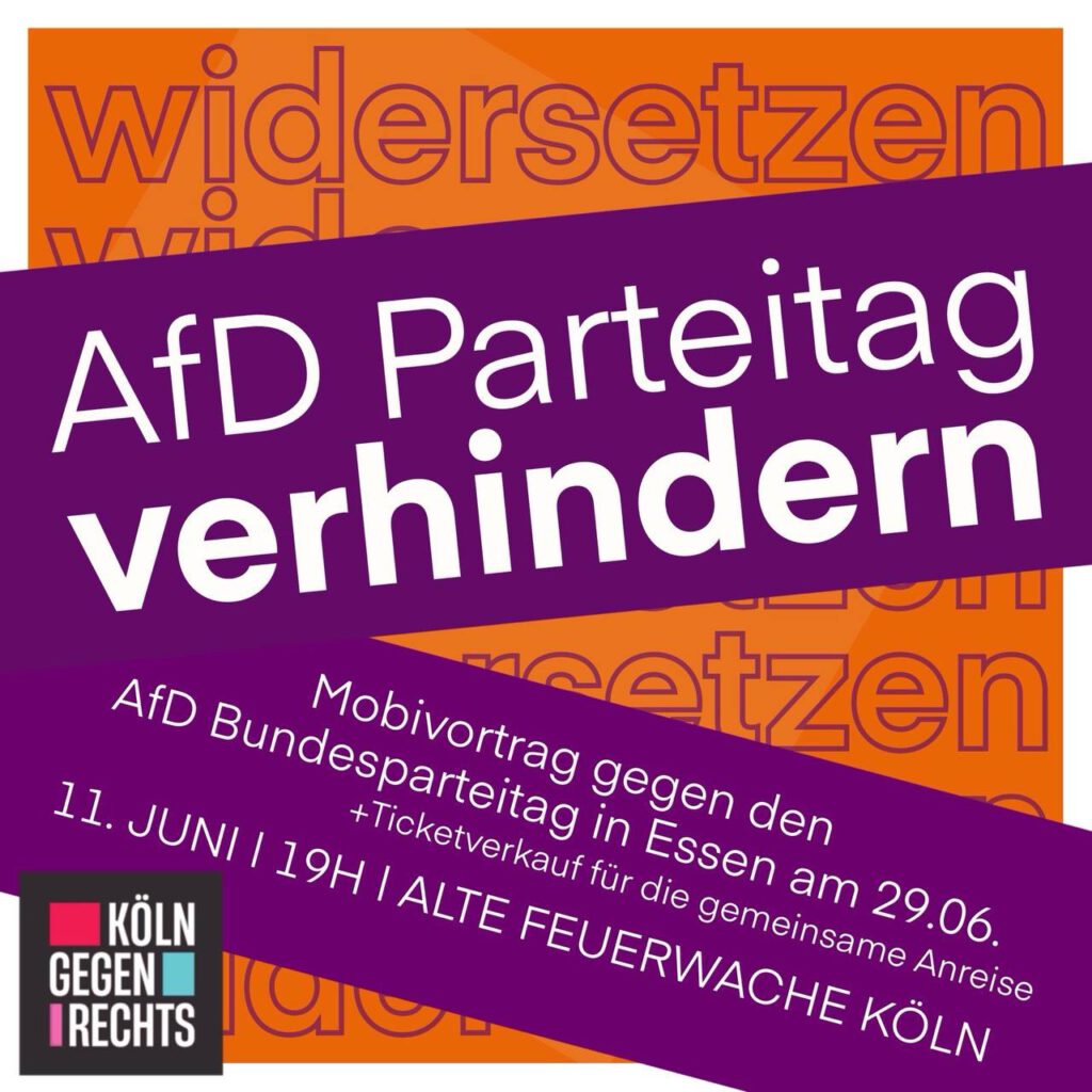 X-Post von Köln gegen Rechts Dienstag, 11. Juni | 19 Uhr | Alte Feuerwache | Melchiorstraße 3 50670 Köln Vom 28. bis 30. Juni 2024 will die AfD in der … Widersetzen: Mobivortrag für ein buntes NRW & Busticket Verkauf für Essen weiterlesen